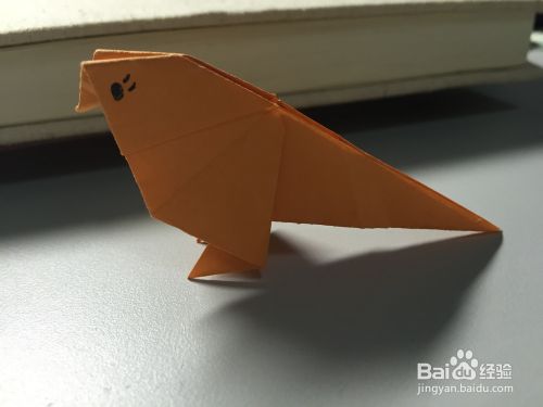 将鸟立起来,折好鸟的嘴巴和尾巴。