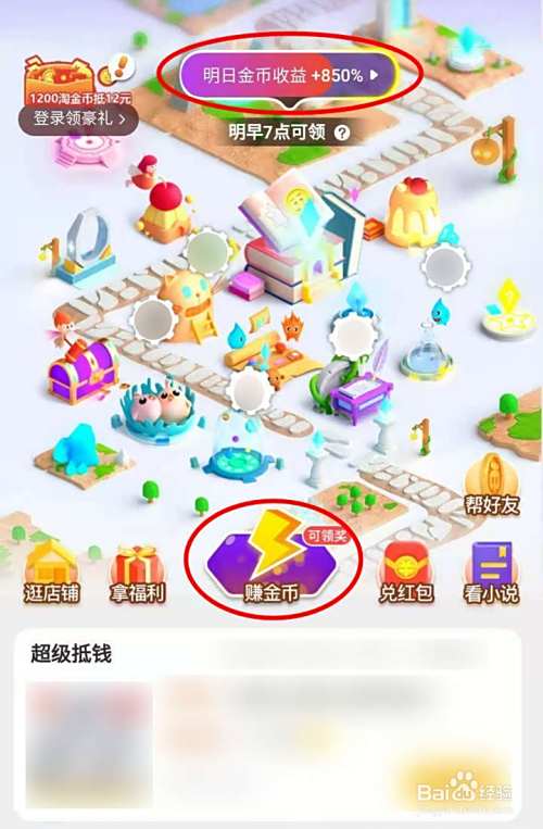 打开金币小镇页面,选择收益进度条或者下方的赚金币;