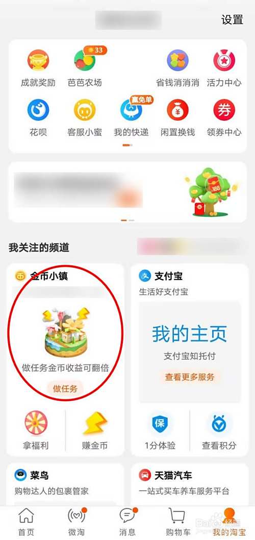 我关注的频道里找出金币小镇,选择打开;