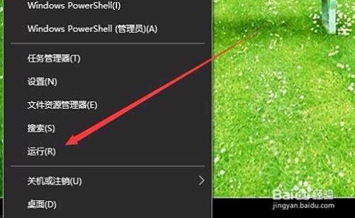在Windows10系统桌面,右键点击桌面左下角的开始按钮,在弹出的菜单中选择“运行”菜单项。