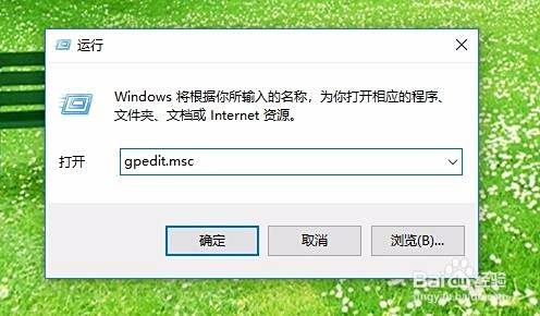 然后在打开的运行窗口中输入命令gpedit.msc,然后点击确定按钮。