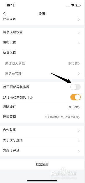 4、将首页顶部导航推荐的滑动按钮向左滑动。