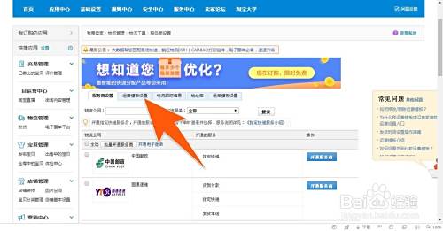 点击后,默认进入“服务商设置页面”,这时再点击鼠标所指的“运费模板设置”项,