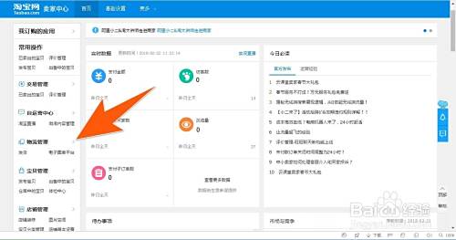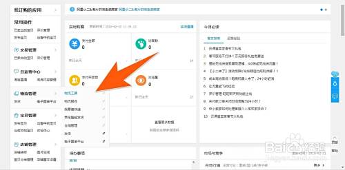 登录卖家中心后,在左侧找到物流管理,再将鼠标移动到箭头所指的灰色小三角上