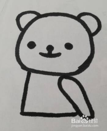 第三步,如图所示,画出小熊的眼睛和鼻子
