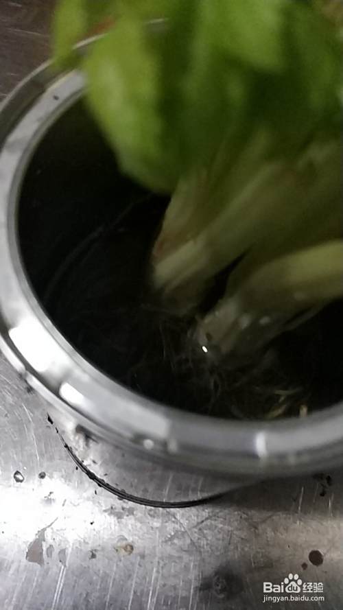 把芹菜放入水杯,倒掉多余的水,水没过根部即可。