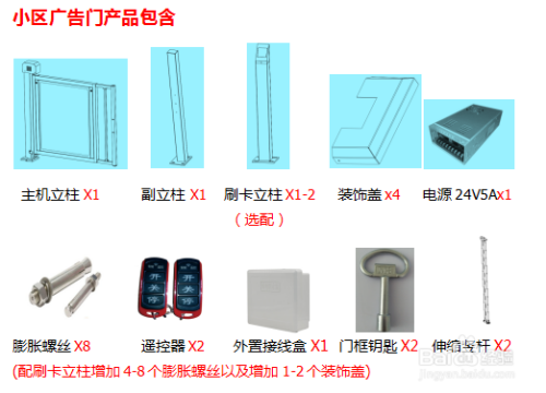 (4).在门体安装位置安装膨胀螺钉(根据清单实际配备的配件确定),将门体固定牢固后,方可调试。