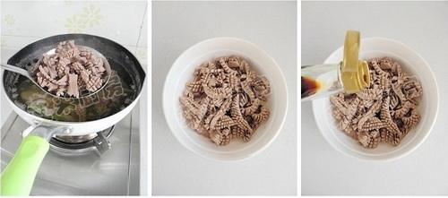 继续大火,水再次沸腾之后将腰花捞出,里面的葱姜花椒拣去不用。捞出的腰花控净水,放在干净无水的容器中。