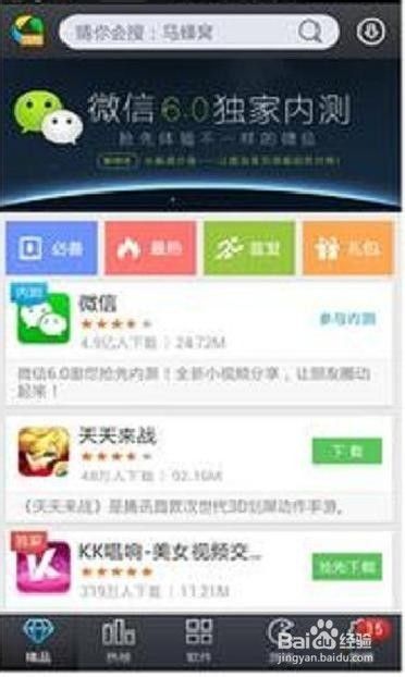 腾讯应用宝成为微信6.0首发平台。所以需要下载安装手机应用宝后,下载安装微信6.0。
