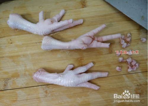 将买到的鸡爪洗干净,去掉指尖。