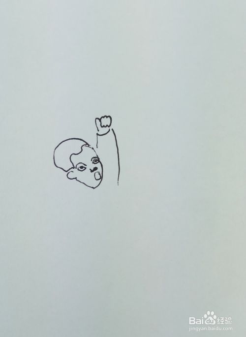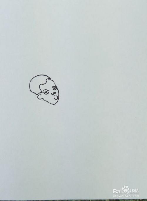 用线条和曲线画出一个小孩的头部轮廓,并画出他的五官和头发。