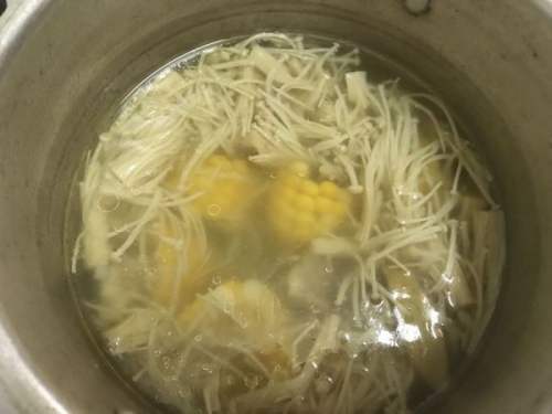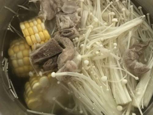 每个月都会煲一次玉米金针菇排骨汤,家人都爱喝。