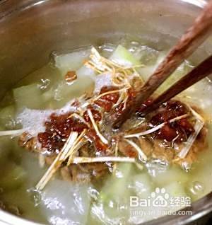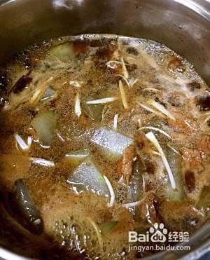 冬瓜如水煮熟,把味好的牛肉直接放入锅中,用筷子迅速搅散