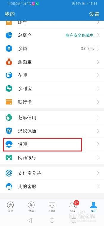 1.手机上打开支付宝,进去我的界面,点击借呗