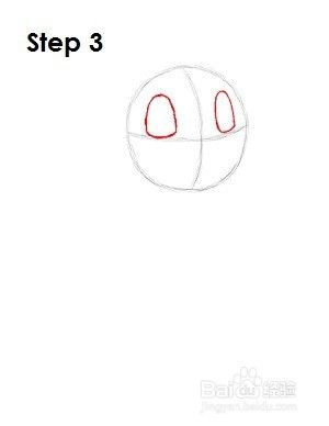 第3步:现在为Charmander的眼睛画出指南。将它们绘制为水平构造线正上方和垂直线任一侧的两个小形状。这些导轨的形状基本上是一条高高的弧线,下面有一条线。由于视角的原因,右侧的形状应该稍小一些。