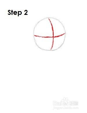 步骤2:接下来,在Charmander的头部划出两条相交的线,一条垂直线和一条水平线。将线弯曲一点,以便它们形成头部的轮廓。这些将是帮助您稍后放置Charmander脸部特征的施工线。