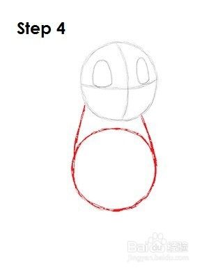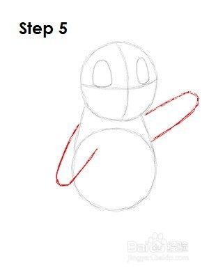 第四步:在Charmander的头下,再画一个比头部略大的圆圈。在圆的两侧绘制两条线,将其连接到头部。这将是绘制Charmander身体的指南。