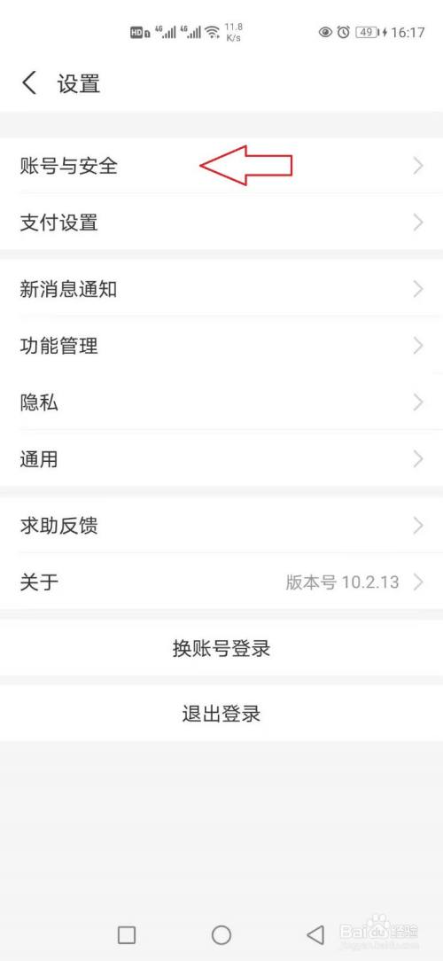 找到【设置】菜单,点击选择【账号与安全】。
