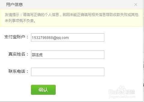 到打赏记录右边设置一下支付资料,填写你的支付宝帐号,姓名,手机号