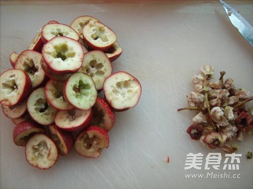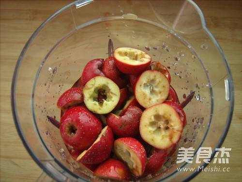 把去籽的山楂放入豆浆杯中,再放水搅拌