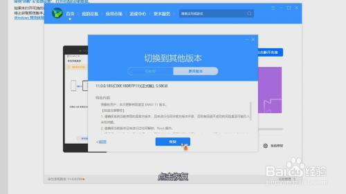 在新界面中,选择更早版本,点击恢复,即可退回安卓系统。