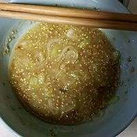 在醒面空档中,做葱油,碗中放三勺面粉,一勺盐,根据个人口味放入适量花椒粉和十三香,放入葱叶沫碎和白芝麻。放置一旁备用。 葱白切碎,放入油中炸3-5分钟,至葱白缩小,变成金黄色,将葱油淋在碗中,迅速搅拌,使所有食材都被热油包围。