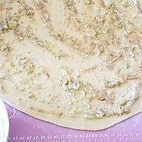 发好的面取出,揉成光滑面球,放置,醒发五分钟后,将面擀成薄片,抹上葱油。 再从一边卷成条。按所需饼的大小,切成等大的剂子。
