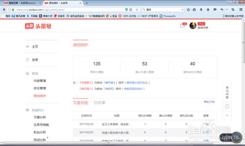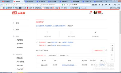 左侧管理框图第三个原创保护,进行点击原创保护