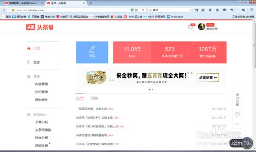 登录今日头条,最上面有个头条号,进行点击头条号
