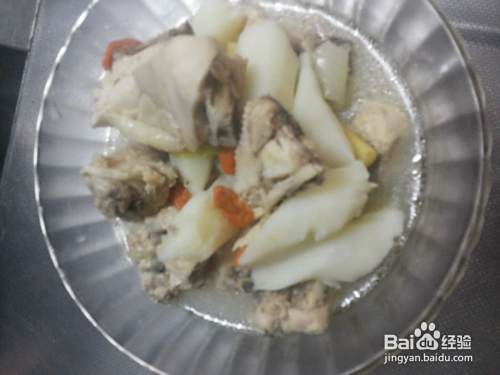 炖鸡先急火开锅炖10分钟,再慢火炖30分钟后,放入山药段。
