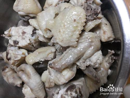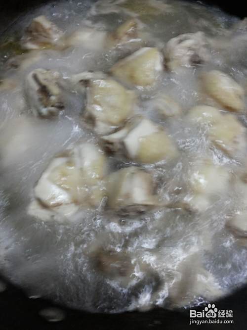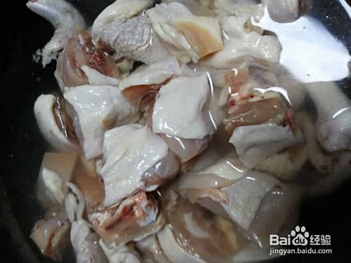 先把鸡洗净,剁成小块。放到锅内加入漫过鸡块的水。