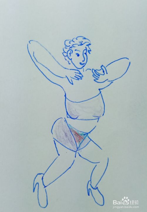 再用线条和曲线画出她的两个胳膊部分,看起来比一般的女人更加粗壮一些。