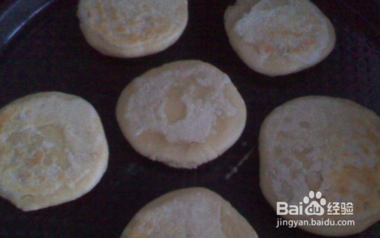 然后用手按扁,用擀面杖擀成小饼状,放入加油预热的电饼铛中,煎至金黄色即可。
