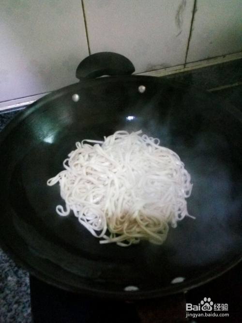 平底锅加油热一下,摆去面条!尽量摆的园一些,薄一点,这样会更好吃!