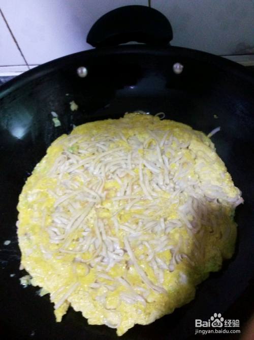 加入鸡蛋肉液,煎直蛋液凝固,稍微带焦!