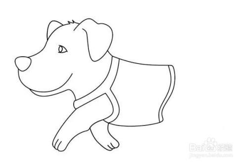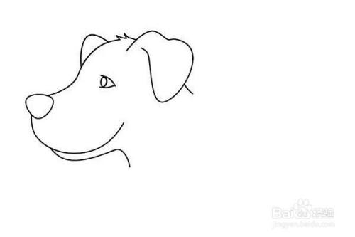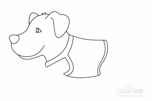 然后画出导盲犬的脑袋和眼睛,用一条大大的弧线画出上扬的嘴角