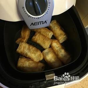 油条切成5厘米左右的长段,放到预热200度的空气炸锅内烤2至3分钟,酥脆就可以了。