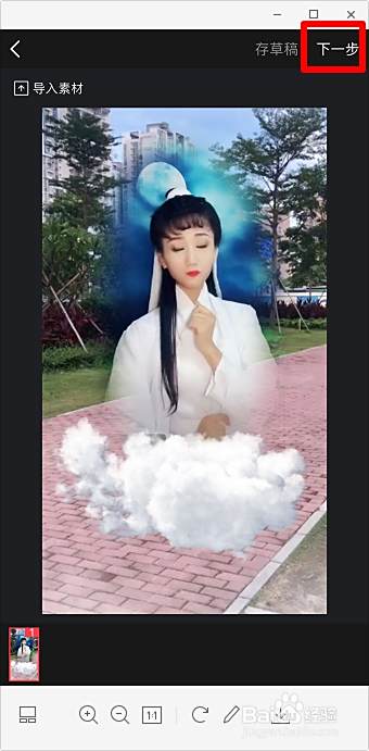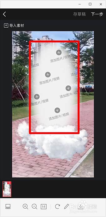 从相册选择照片或视频添加进来,可拖动或缩放照片、视频,然后点击“下一步”。