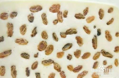 搅拌均匀后倒入一个大碗中,加入菜碎再搅拌均匀。取一个容器,底部垫上一张硅油纸,倒入山药糊,葡萄干抹平