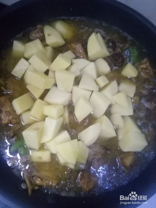翻炒均匀后倒入备用鸡汤,放入鲜辣椒段炖至15分钟后放入土豆块大火炖煮。