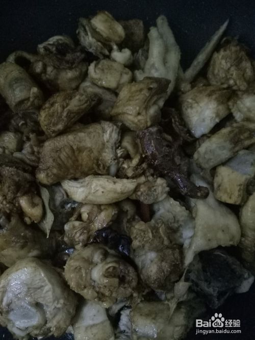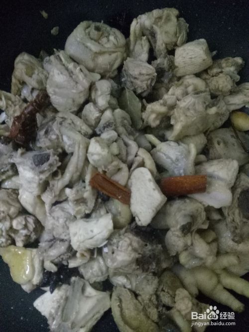 炒锅放油烧热(油可以多一点),放入葱姜八角花椒炒出味,倒入鸡块翻炒入味。然后放入准备好的大料。