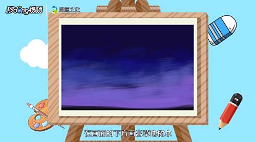 1首先涂上一层深蓝色的底色,再用浅一点的蓝色、青色、粉紫色画天空。