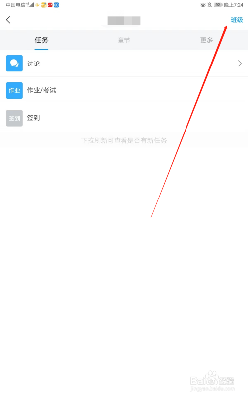 进入班级后点击右上角的蓝色字班级