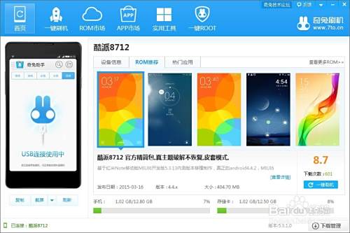 着智能手机的普及,刷机逐渐变成了热门,网上已经可以找到几款一键刷机软件了,比如:奇兔刷机,支持酷派8712一键刷机,支持多数热门机型一键刷机的功能。本文将为大家介绍奇兔刷机怎么用?如何使用奇兔刷机对酷派8712进行一键刷机,下面一起来看看酷派8712一键刷机教程吧,具体步骤如下: