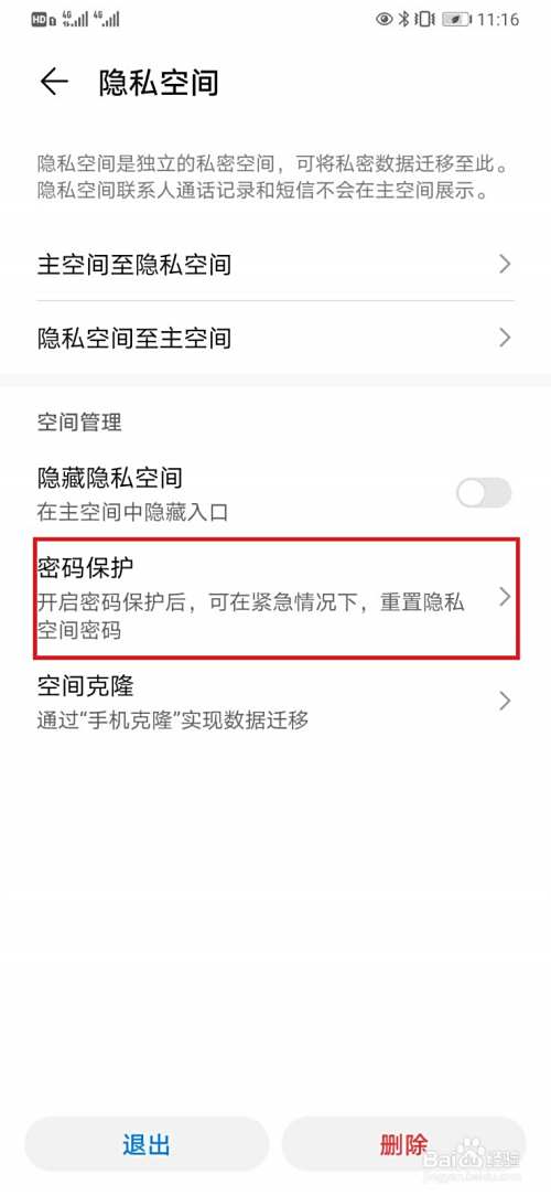 华为手机的隐私空间开启密保功能,可以在忘记隐私空间密码时,通过密保问题重置隐私空间密码。