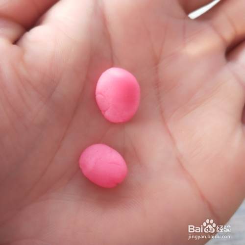 如图,把压扁的红色橡皮泥粘在绿色橡皮泥的上端。
