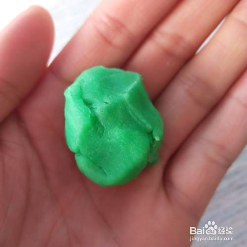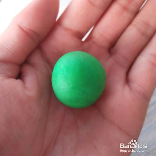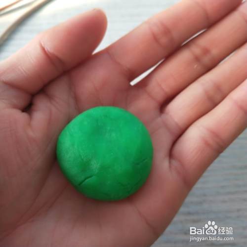 如图,取一块绿色的橡皮泥,团成圆球状。