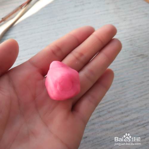 如图,把扁扁的橡皮泥上端做出下图的模样。
