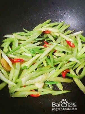 放出芹菜翻炒至断生。