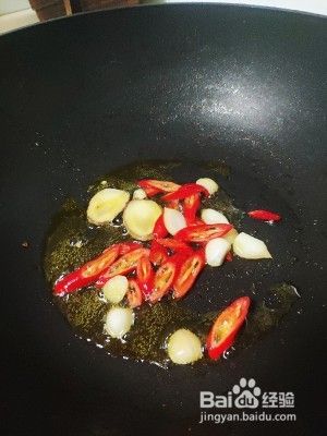 起锅烧油,油热加入姜蒜辣椒爆香。